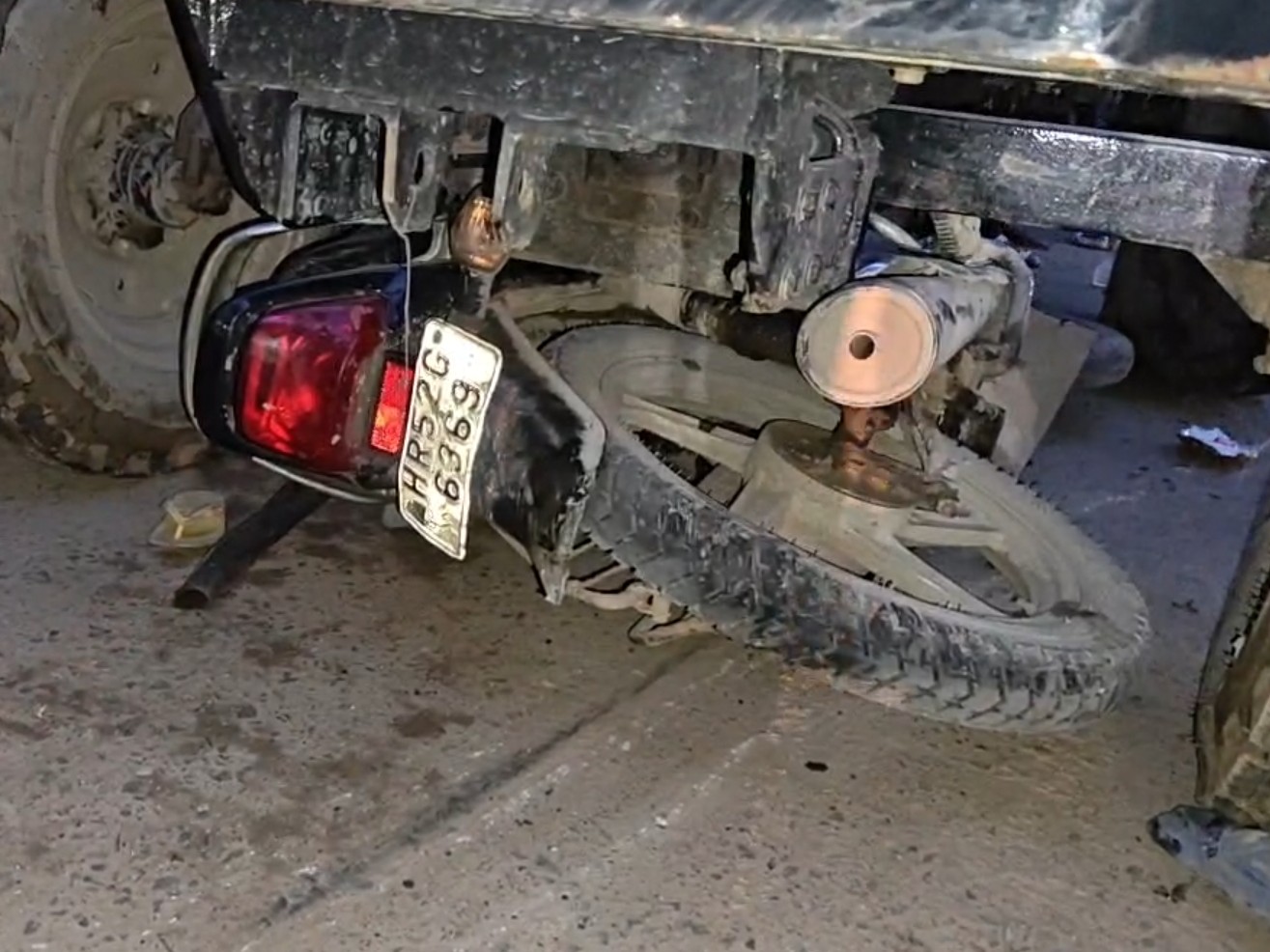 ट्रैक्टर के नीचे फंसी बाइक हादसे की सूचना मिलने पर डायल 112 की टीम मौके पर पहुंची। ERV वाहन पर तैनात पुलिसकर्मी राकेश कुमार ने बताया कि उन्होंने स्थानीय लोगों से जानकारी पाई और मौके पर जाकर देखा कि ट्रैक्टर सड़क पर खड़ा था और बाइक उसके नीचे फंसी हुई थी।