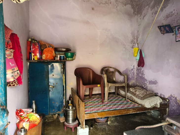 नक्सल दम्पति का कमरा भीतर से ऐसे ही दिखता है, दीवारों में सीपेज है और मकान पुराना हो गया है। (फोटो-पडोस का कमरा)