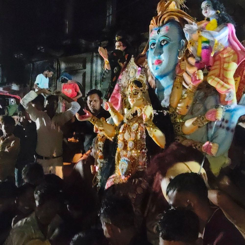 मां दुर्गा प्रतिमा विसर्जन के दौरान भव्य जुलूस निकला।