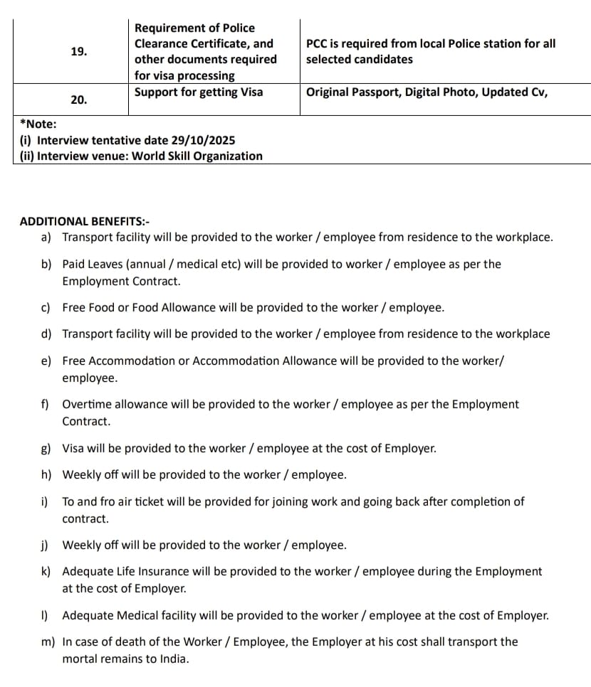 इंटरव्यू ऑनलाइन और ऑफलाइन मोड में होगा। इसके लिए खाड़ी अनुमोदित चिकित्सा केंद्र एसोसिएशन (GAMCA) से अप्रूव केंद्रों के चिकित्सा प्रमाण पत्र ही मान्य होंगे।