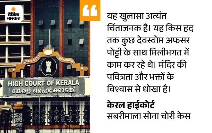 हाईकोर्ट ने 6 अक्टूबर को सुनवाई करते हुए कहा था कि पोट्टी को लगभग 474.9 ग्राम सोना दिया गया था। हाईकोर्ट ने उन्नीकृष्णन पोट्टी के उस ईमेल का भी जिक्र किया, जो उसने 9 दिसंबर, 2019 को TDB के अध्यक्ष को भेजा था।