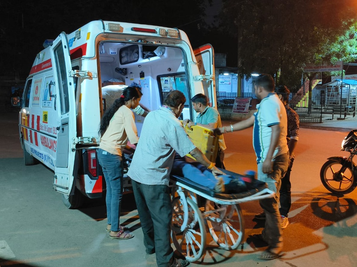 घायल अहमद नूर को जिला अस्पताल के रेफर करते स्वास्थ्यकर्मी।