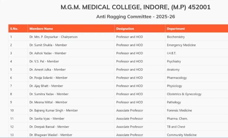 एंटी रैगिंग कमेटी के ये हैं सदस्य