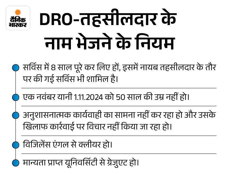 ACR के नंबर भी जुड़ेंगे इन पदों के लिए राजस्व अधिकारियों और तहसीलदारों की वार्षिक गोपनीय रिपोर्ट (एसीआर) के नंबर भी जुड़ेंगे। एसीआर यदि आउटस्टैंडिंग है तो इसके लिए अभ्यर्थी को 8.75 नंबर, वेरी गुड के 7, गुड के 5 नंबर प्रति वर्ष के हिसाब से 8 एसीआर के मिलेंगे। आठ साल की सर्विस के बाद संबंधित अनुभव के लिए प्रति वर्ष के 0.5 नंबर जुड़ेंगे।