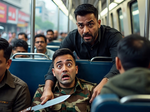 सेना के जवान पर ट्रेन में चाकू से हमला किया गया, जिससे उसका काफी खून बह गया। (फोटो सोर्स-मेटा एआई)।