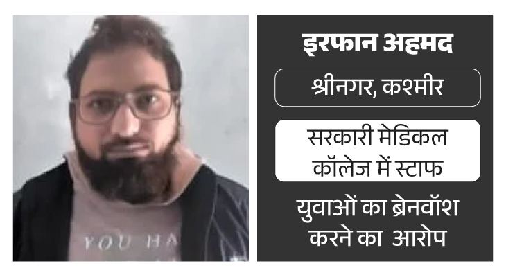 कौन है ब्रेनवॉश करने वाला मौलवी इरफान अहमद सोर्स बताते हैं कि फरीदाबाद मॉड्यूल में शामिल सभी डॉक्टरों को मौलवी इरफान अहमद ने कट्टरपंथी बनाया था। वह श्रीनगर के सरकारी मेडिकल कॉलेज में काम करता था और सभी स्टूडेंट के संपर्क में था। इरफान नौगाम मस्जिद का इमाम भी था।