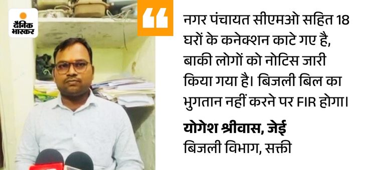 नगर पंचायत CMO समेत 18 घरों की बिजली सप्लाई काटी गई।