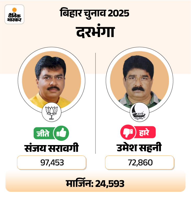हार के कारण 1. दरभंगा सीट BJP का गढ़ है। पार्टी यहां 2009 से लगातार चार लोकसभा चुनाव जीती है। 2. 2005 के बाद से संजय सरावगी विधायक हैं। उनकी इमेज अच्छी है। 3. इस सीट पर 76% वोटर शहरी हैं, जो NDA के समर्थक माने जाते हैं। 20% कायस्थ, 12% ब्राह्मण और 20% दलित वोट का गठजोड़ उसे मजबूत बनाता है।