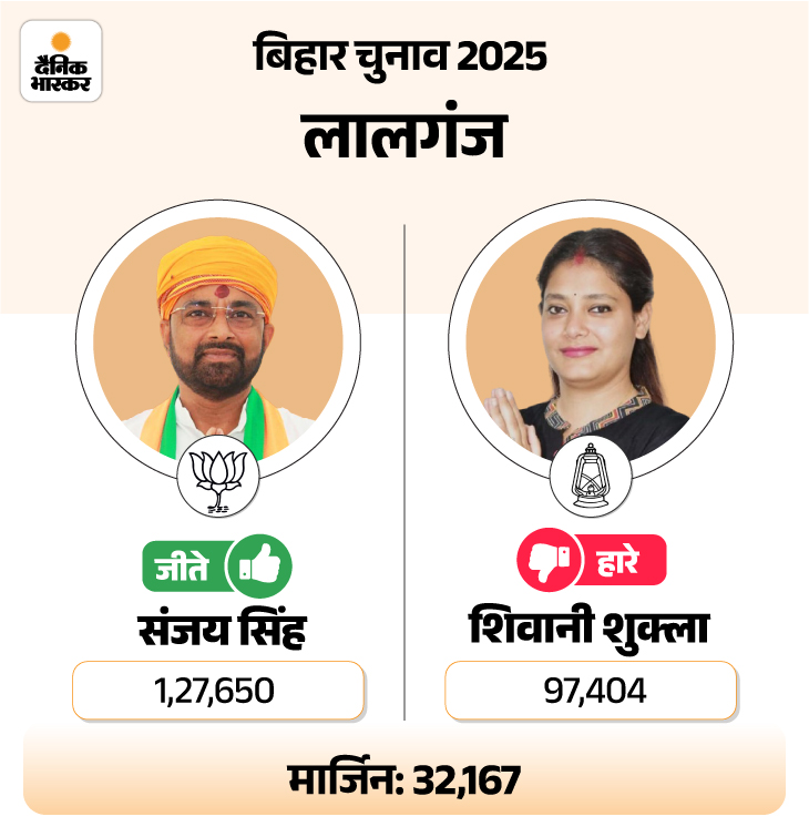 हार के कारण 1. संजय सिंह की छवि अच्छी है। उनके पास राजपूत, कोइरी और EBC का संगठित वोटबैंक है। 2. यहां कांग्रेस ने आदित्य राजा को टिकट दिया था। बाद में सीट RJD के खाते में चली गई, कांग्रेस का वोटबैंक इससे नाराज हो गया। 3. शिवानी को मुन्ना शुक्ला की बेटी होने का फायदा मिला, लेकिन भूमिहार वोट बंट गया।