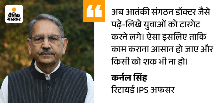 पढ़े-लिखे लोगों को ब्रेनवॉश कर बना रहे ‘व्हाइट कॉलर टेररिस्ट’ दिल्ली ब्लास्ट मामले में डॉक्टरों के ही ज्यादातर लिंक क्यों सामने आ रहे हैं। इसे लेकर रिटायर्ड IPS अफसर कर्नल सिंह बताते हैं, ‘मैं सिर्फ डॉक्टर की बात नहीं अच्छे पढ़े-लिखे और कम पढ़े लिखे लोगों से तुलना कर बात करूंगा। असल में साल 2000 से पहले इंडियन मुजाहिद्दीन में काफी पढ़े-लिखे आतंकी थे। इनमें से कई दिल्ली की जामिया यूनिवर्सिटी से पास आउट थे।‘