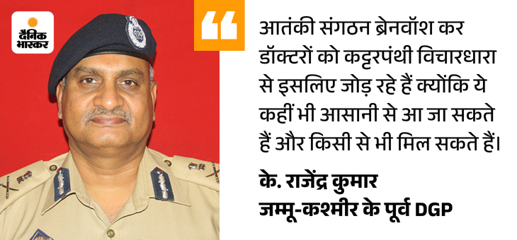कश्मीर में पहले भी डॉक्टर और सरकारी कर्मियों के आतंकियों से लिंक मिले फरीदाबाद डॉक्टर टेरर मॉड्यूल में ज्यादातर कश्मीर से आए संदिग्ध आतंकी डॉक्टर ही शामिल हैं। इसे लेकर हमने जम्मू कश्मीर के पूर्व DGP के. राजेंद्र कुमार से बात की। वे कहते हैं, ‘ऐसा नहीं है कि पहली बार किसी टेरर अटैक में डॉक्टरों की भूमिका सामने आई हैं। जम्मू कश्मीर में पिछले कुछ सालों में कई सरकारी कर्मचारी टेरर लिंक में बर्खास्त किए जा चुके हैं।‘