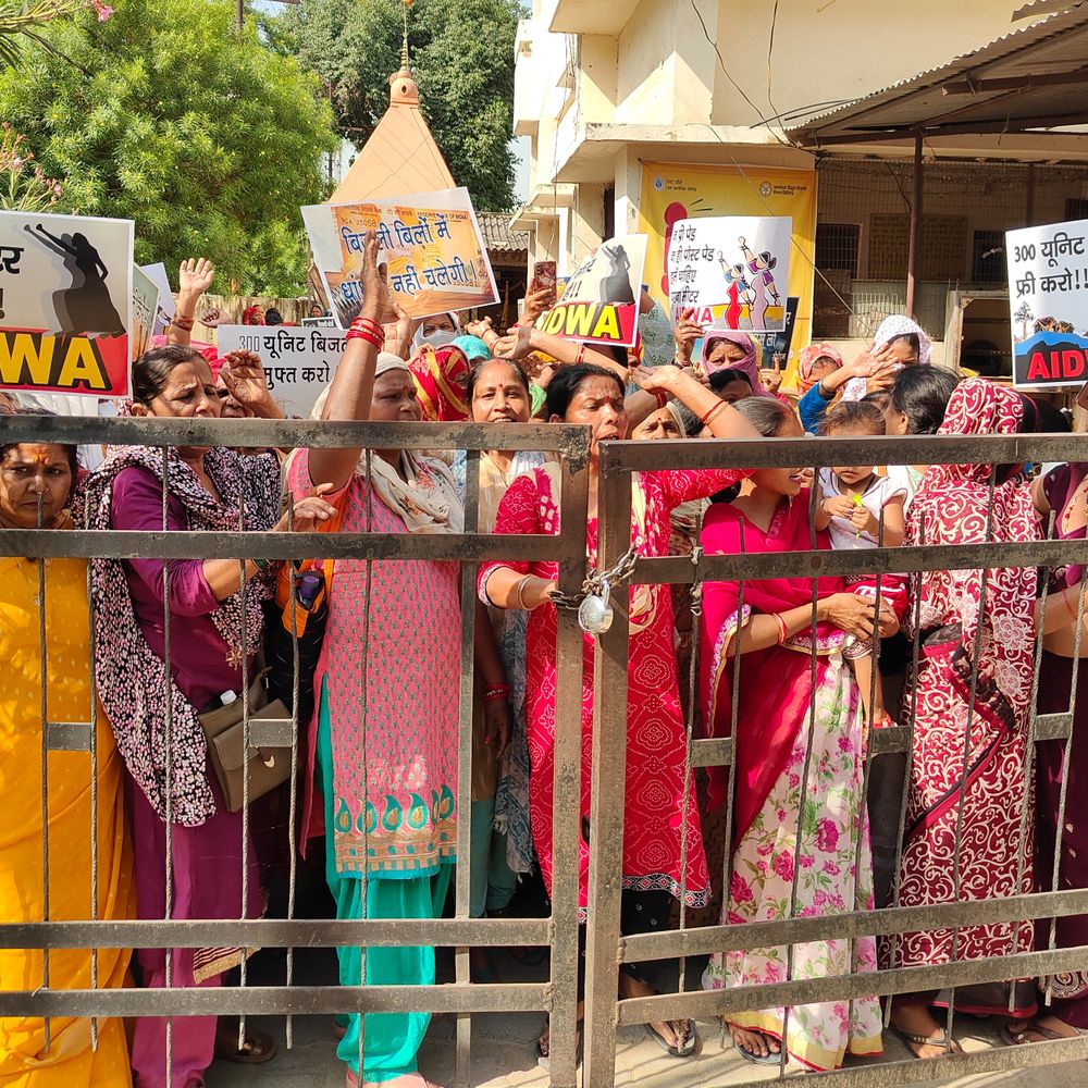 क्लिनिक के आगे प्रदर्शन करते परिजन और स्थानीय आक्रोशित लोग।