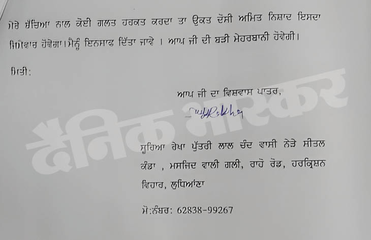 पुलिस कमिश्नर को लिखी शिकायत में लगाए गंभीर आरोप रेखा के पुराने मोबाइल में पुलिस कमिश्नर के नाम लिखी जो शिकायत मिली है उसमें लिखा है कि वो 30 अक्तूबर 2024 को अपने परिवार व अमित निषाद के साथ वैष्णो देवी गई थी। दो नवंबर को वहां से ट्रेन में वापस आए। रास्ते में वो बाथरूम में गई तो अमित निषाद ने उसके बच्चों से मोबाइल लिया और सारा डेटा फोटो वीडियो समेत अपने मोबाइल में ट्रांसफर कर दिया।