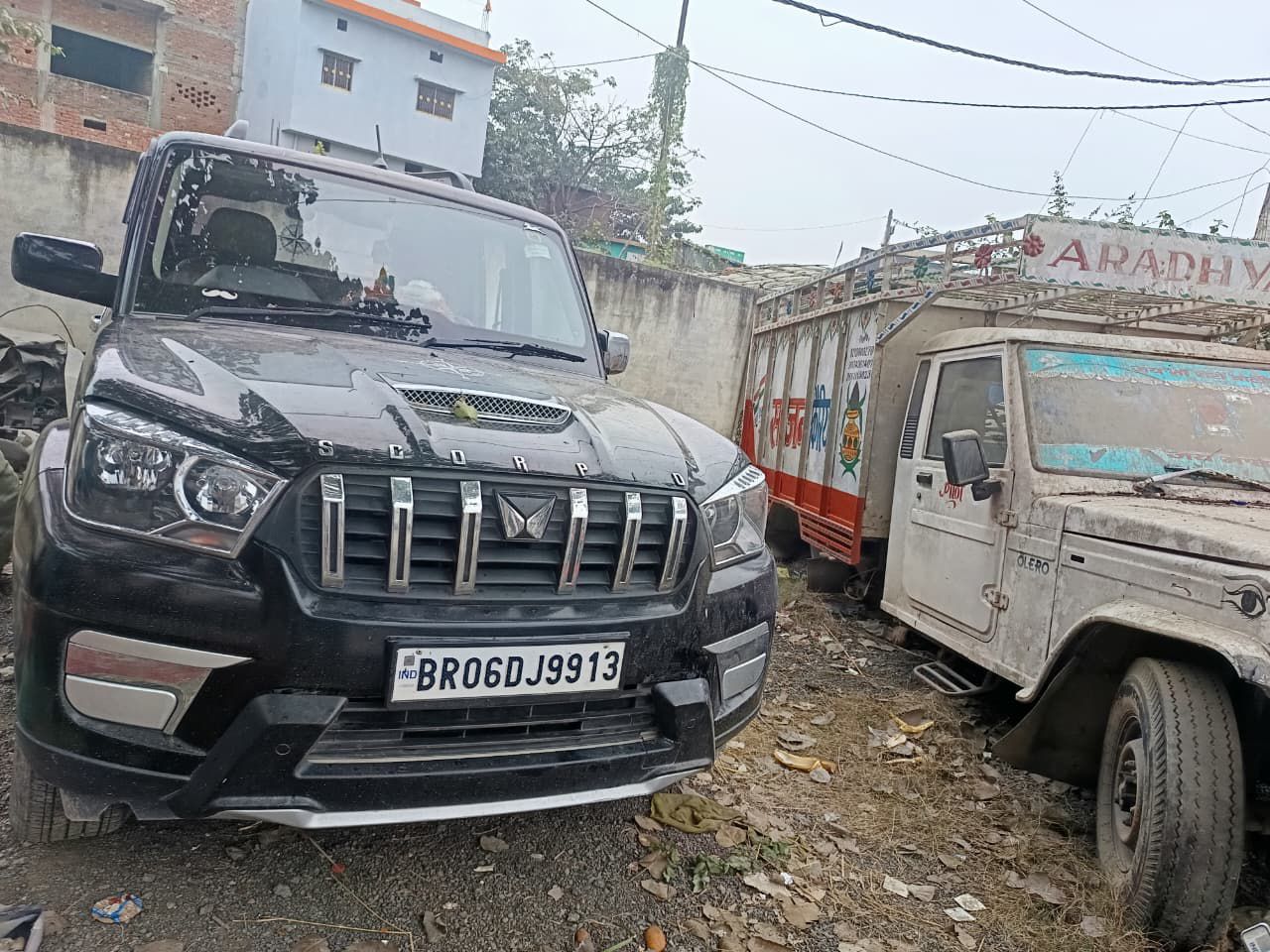 पुलिस थाना में मुजफ्फरपुर से पकड़ी गई स्कॉर्पियो।