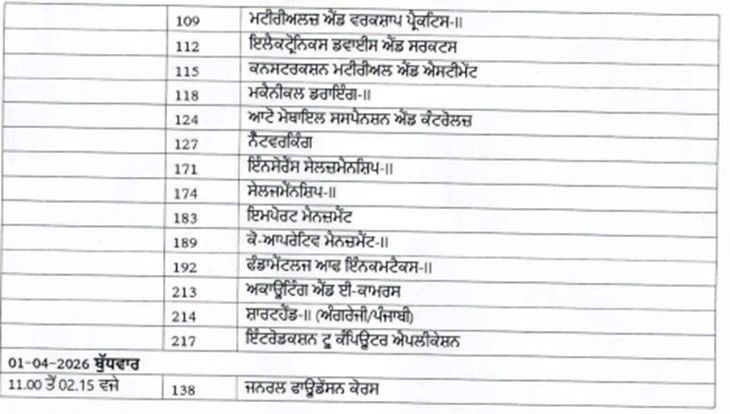 - कक्षा 8वीं: पंजाब स्कूल शिक्षा बोर्ड के अनुसार 8वीं की लिखित परीक्षाएं 17 से 27 फरवरी तक सुबह 11 से 2:15 बजे तक होंगी, जिसमें करीब 2.77 लाख स्टूडेंट्स 2300 से अधिक केंद्रों पर परीक्षा देंगे।