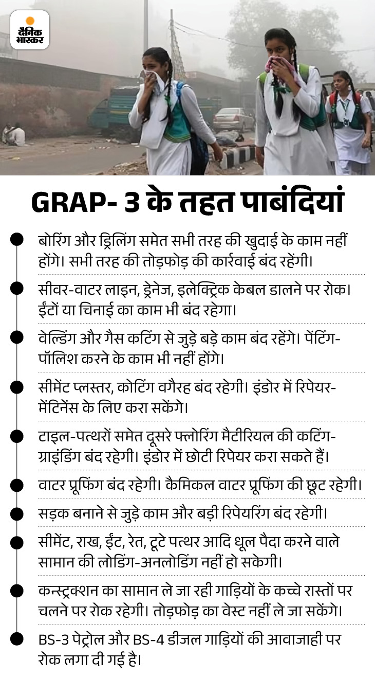 दिल्ली-NCR और आसपास के इलाकों में बढ़ते वायु प्रदूषण को देखते हुए वायु गुणवत्ता प्रबंधन आयोग (CAQM) ने शुक्रवार को GRAP (ग्रेडेड रिस्पॉन्स एक्शन प्लान) के तहत चरण-3 (GRAP-3) की पाबंदियां लागू कर दी हैं।