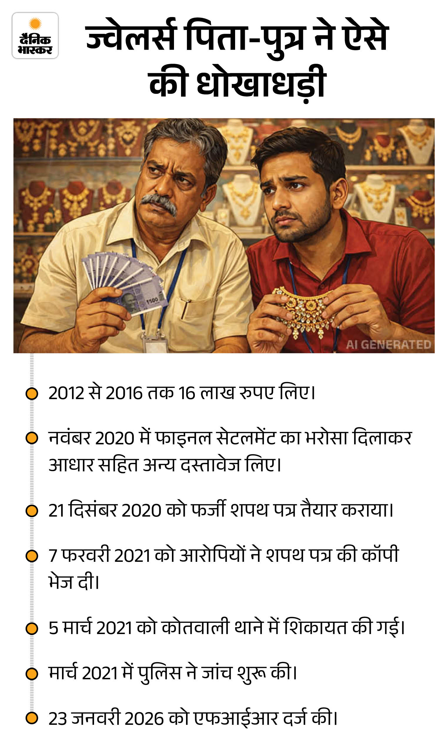 आरोप है कि सराफा कारोबारी पिता-पुत्र ने पहले व्यापारिक जरूरत बताकर 9 जुलाई 2012 को लालमणि प्रसाद जैन से 3 लाख रुपए चेक के जरिए उधार लिए। जून 2013 तक नियमित ब्याज भी चुकाया गया, जिससे विश्वास और मजबूत हुआ।
