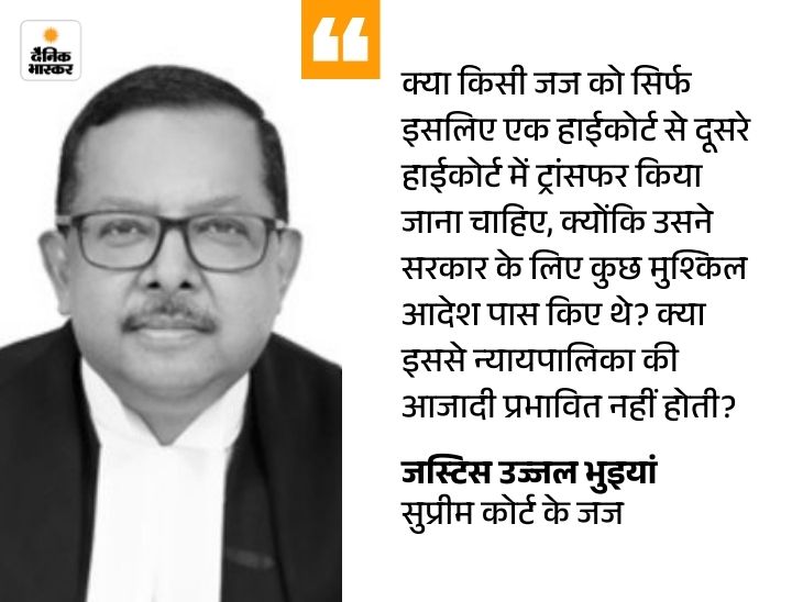 सुप्रीम कोर्ट के जज जस्टिस उज्जल भुइयां ने शुक्रवार को कहा कि जजों का ट्रांफर न्यायपालिका का आंतरिक मामला है। इसमें सरकार या केंद्र की कोई भूमिका नहीं है।