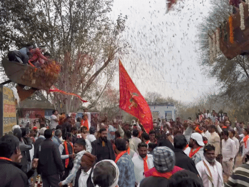 राजस्थान सरकार के गृह राज्य मंत्री जवाहर सिंह बेढम पर मंगलवार को अलवर के रैणी के गांव टहटड़ा मे ंदो-दो जेसीबी से जमकर फूल बरसाए। यहां बालाजी बाबा के पावन धाम पर 51 फीट विशाल ध्वजारोहण एवं दंगल सहित धार्मिक कार्यक्रम हुए। इस अवसर पर गृह राज्यमंत्री बेढम ने कहा कि धार्मिक एवं सामाजिक कार्यक्रमों में हमारी संस्कृति, आस्था और सामाजिक एकता की जीवंत झलक देखने को मिलती है। इस प्रकार के आयोजन ना केवल धार्मिक आस्था के प्रतीक हैं, बल्कि सामाजिक समरस्ता, सांस्कृतिक गौरव और जन-जन के विश्वास का जीवंत प्रमाण है। ग्रामीणों का स्नेह, अपनत्व और विश्वास ही मेरी जन सेवा की सबसे बड़ी प्रेरणा है। जनसेवा, जनसंवाद और जनकल्याण का यह क्रम निरंतर चलता रहेगा। उन्होंने कहा कि प्रधानमंत्री श्री नरेन्द्र मोदी ने कहा था कि देश के विकास के साथ-साथ हमारी संस्कृति व विरासत का संरक्षण जरूरी है। इसी दिशा में मुख्यमंत्री भजनलाल शर्मा के नेतृत्व में राज्य सरकार प्रदेश के चहुंमुखी विकास की दिशा में आगे बढकर काम कर रही है। डबल इंजन की सरकार देश की संस्कृति को बढाने, युवाओं व किसानों की समृद्धि के लिए निरन्तर सकारात्मक भाव से काम कर रही है। इस दौरान सरस डेयरी के पूर्व चेयरमैन बन्नाराम मीणा सहित स्थानीय जनप्रतिनिधि गण एवं बड़ी संख्या में श्रद्धालु मौजूद रहें।
