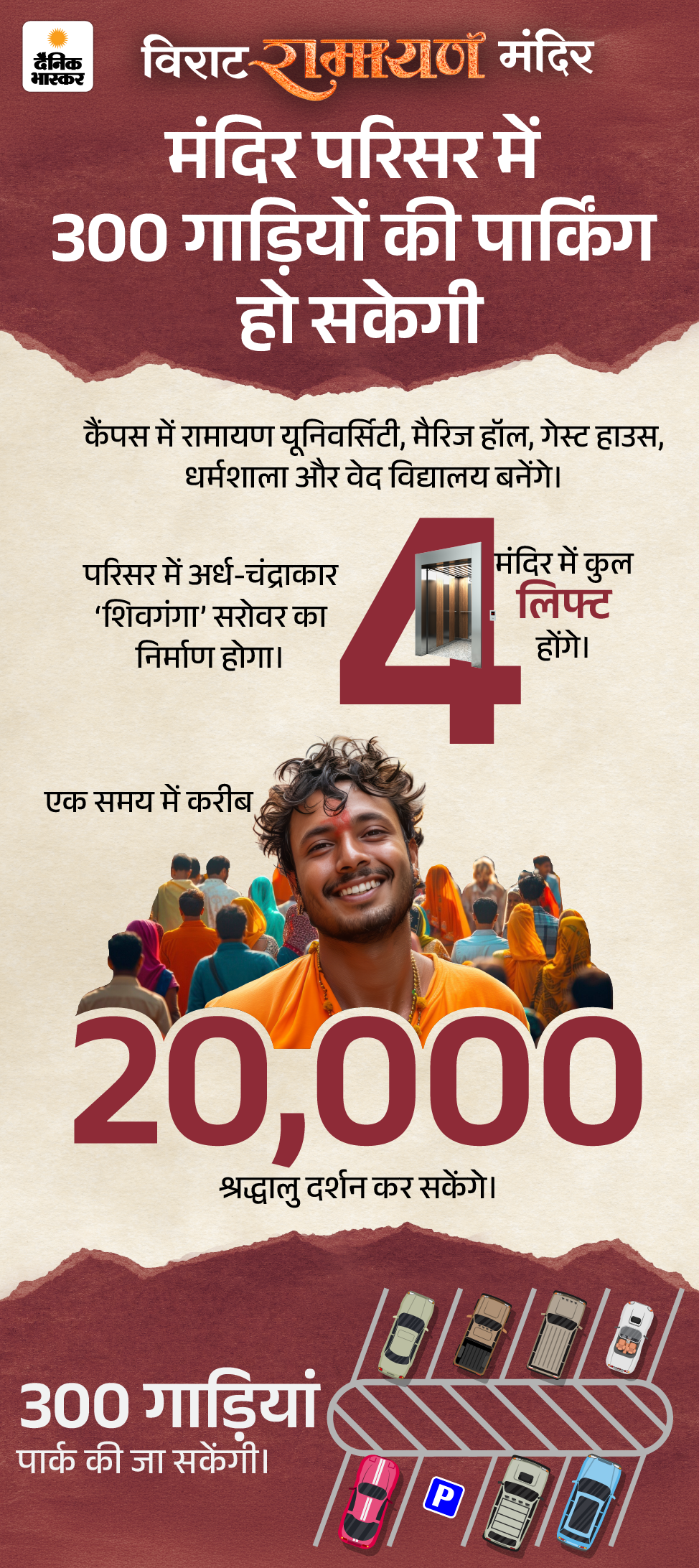 इस लिहाज से यह मंदिर अयोध्या के राम मंदिर का 1.7 गुना होगा। इसको बनाने में करीब 1,000 करोड़ रुपए खर्च होने का अनुमान है। मंदिर का प्लेटफॉर्म यानी बेस बन चुका है। शिलान्यास के बाद से आसपास के इलाकों में जमीन की कीमतें 100 गुना तक बढ़ चुकी हैं।
