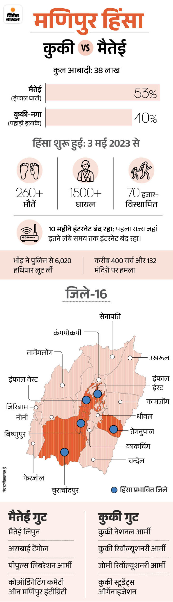 इसका पता चलने के बाद प्रदर्शनकारियों में गुस्सा और भड़क गया। सूत्रों के मुताबिक, बिती हिंसा में कुकी जोमी लोगों को बहुत नुकसान हुआ है। इंफाल में दिनदहाड़े सैकड़ों लोगों की हत्या कर दी गई और उनकी लाखों की संपत्ति जला दी गई, साथ ही उनके चर्चों को भी आग लगा दी गई।