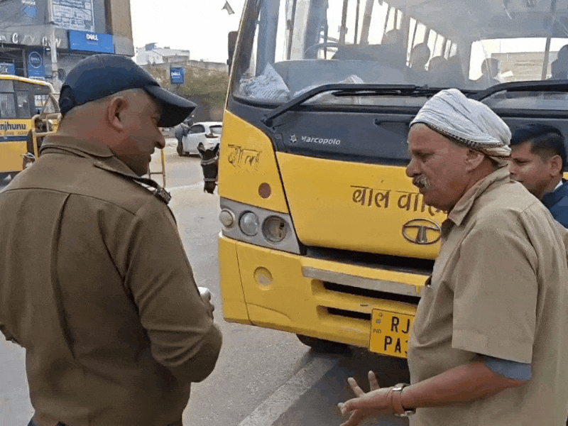शहर में स्कूली बच्चों की सुरक्षा को लेकर प्रशासन आज पूरी तरह मुस्तैद नजर आया। झुंझुनूं शहर के मण्डावा मोड़ पर ट्रैफिक पुलिस, परिवहन विभाग और शिक्षा विभाग की संयुक्त टीम ने विशेष अभियान चलाकर स्कूल बसों (बाल वाहिनियों) की सघन चेकिंग की। इस कार्रवाई से स्कूल संचालकों और बस चालकों में हड़कंप मच गया। यह कार्रवाई ट्रैफिक इंचार्ज राधेश्याम सांखला के नेतृत्व में की गई। इस विशेष अभियान में तीन विभाग शामिल थे। इस दौरान यातायात नियमों की पालना, वाहनों के दस्तावेज और तकनीकी फिटनेस की जांच की गई। शिक्षा विभाग। कि ओर से विभागीय गाइडलाइंस और सुरक्षा मानकों की मॉनिटरिंग की गई। 46 वाहनों की हुई जांच मण्डावा मोड़ पर कैम्प लगाकर टीम ने सुबह-सुबह स्कूलों की ओर जा रही बसों को रोककर उनकी बारीकी से जांच की। जांच के दौरान मुख्य रूप से सुप्रीम कोर्ट की गाइडलाइंस और परिवहन विभाग के सुरक्षा मानकों को आधार बनाया गया। 46 बाल वाहिनियों की जांच की गई। 15 वाहनों के विभिन्न कमियों के चलते चालान काटे गए। नियमों के गंभीर उल्लंघन पर RTO विभाग द्वारा एक बाल वाहिनी को मौके पर ही सीज कर दिया गया। शिक्षा विभाग की सख्त चेतावनी मौके पर मौजूद शिक्षा विभाग के ACBO संजय कुमार ने बताया कि विभाग की स्पष्ट गाइडलाइंस हैं कि बच्चों को लाने-ले जाने वाले वाहनों में सुरक्षा के पुख्ता इंतजाम होने चाहिए। उन्होंने स्पष्ट किया कि: शिक्षा विभाग की गाइडलाइन के अनुसार ही स्कूल बसों का संचालन अनिवार्य है। आज की कार्रवाई एक शुरुआत है और अब पूरे जिले में अभियान चलाकर इसी तरह औचक निरीक्षण किया जाएगा। इन मानकों की हुई जांच बस में फर्स्ट एड बॉक्स और अग्निशमन यंत्र (Fire Extinguisher) उपलब्ध है? चालक के पास वैध लाइसेंस और वाहन के फिटनेस दस्तावेज हैं या नहीं? क्षमता से अधिक बच्चे तो नहीं बिठाए गए हैं? बस पर ‘स्कूल बस’ और हेल्प लाइन नंबर स्पष्ट लिखे हैं या नहीं?