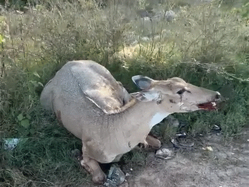 मोहाली में बुधवार सुबह एक भीषण हादसा हुआ है। इस दौरान एयरपोर्ट के पास तेज रफ्तार कार के आगे अचानक नीलगाय आ गई। गाय सीधे बोनट के आगे आकर गिरी। हादसा इतना भयंकर था कि गाड़ी पूरी तरह घूम गई, कार सवार लोगों का बचाव हो गया। लेकिन कार क्षतिग्रसत हो गई। गाय बुरी तरह से घायल हो गई। गाय की टांगे टूट गई। गऊ सेवा समिति के लोग उसे अस्पताल लेकर गए हैं। हालांकि लोगों की माने तो गाय की हालत बहुत ज्यादा खराब थी। हादसे के बाद कार पूरी तरह घूमी इस बारे में प्रत्यक्षदर्शी गगन शर्मा ने बताया कि वह सुबह अपनी ड्यूटी खत्म कर घर जा रहे थे। उस समय यह हादसा सेक्टर-80 के पास हुआ। क्योंकि वहां पर जंगल का एरिया है। ऐसे में एक नीलगाय अचानक सड़क पर पहुंच गई। जबकि रोड से कार जा रही थी। वह सीधे कार से टकराई। कार पूरी तरह से घूम गई, लेकिन बचाव हो गया। लेकिन कार पूरी तरह क्षतिग्रस्त हो गई। कार वालों को समझ नहीं आया कि आखिर हुआ क्या है। अगर यह हादासा दिन के समय होता है तो कई लोगों की जान तक जा सकती थी। दूसरी तरफ हादसे के बाद कार बुरी तहह घायल हो गई। उसके शरीर से खून बह रहा था। वह उठ तक नहीं पा रही थी। गौशाला की टीमें उसे ले गई है। गौ अस्पताल की टीम पहुंची मौके जानकारों की मानें तो हादसे के बाद वहां पर काफी समय में लोग पहुंच गए थे। लेकिन गाय की मदद के लिए कोई आगे नहीं आ रहा था। इसके बाद गगन ने बताया कि उन्होंने पुलिस व समाजसेवी लोगों को सूचित किया। इसके बाद मौके पर गऊशाला की टीम पहुंची। गाय को तुरंत फेज-1 अस्पताल लेकर गए हैं। लोगों का कहना है कि प्रशासन को इस एरिया में जागरूकता होर्डिंग लगाने चाहिए, रोड के दोनों तरफ रेल गार्ड लगाए जाने चाहि, ताकि इस तरह के हादसे रोके जा सकें।