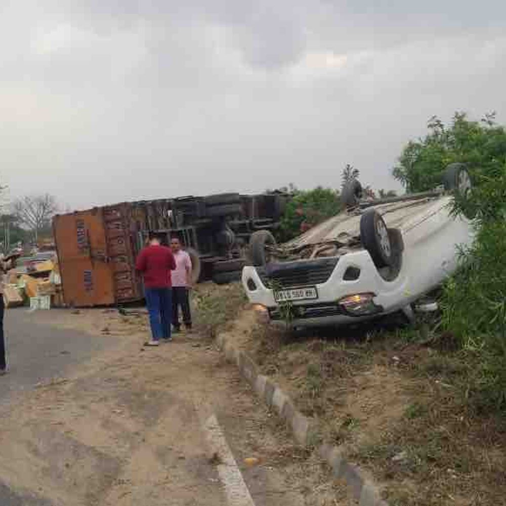 जालंधर-गोराया हाईवे पर एक ट्रक और कार की टक्कर हो गई। इस हादसे में दोनों वाहन सड़क पर पलट गए, जिससे तीन लोग गंभीर रूप से घायल हो गए। सभी घायलों को इलाज के लिए अस्पताल में भर्ती कराया गया है। जानकारी के अनुसार, नव भारत ट्रांसपोर्ट का एक ट्रक (नंबर पीबी10 जीएस 0998) साबुन और अन्य सामान लेकर जालंधर की ओर जा रहा था। यह हादसा हाईवे पर इसी दौरान हुआ। हादसे में घायल सरबजीत नामक युवक ने बताया कि उसने अपनी कार पंप पर लगाने के लिए रोकी थी और डिप्पर भी दिया था। स्थानीय लोगों ने दी पुलिस को सूचना इसके बावजूद पीछे से आ रहे ट्रक ड्राइवर ने उसकी कार में टक्कर मार दी। टक्कर इतनी भीषण थी कि कार और ट्रक दोनों सड़क पर पलट गए। एक बोलेरो ड्राइवर ने बताया कि वह अपनी कार को बचाकर निकलने में सफल रहा और बाल-बाल बच गया। टक्कर के बाद ट्रक डिवाइडर पर चढ़ गया था। स्थानीय लोगों ने घटना की सूचना पुलिस को दी। मौके पर पहुंची पुलिस ने मामले की जांच शुरू कर दी है। पुलिस अधिकारियों के अनुसार, दोनों पक्षों के बयान दर्ज किए जा रहे हैं और उनके आधार पर आगे की कार्रवाई की जाएगी।