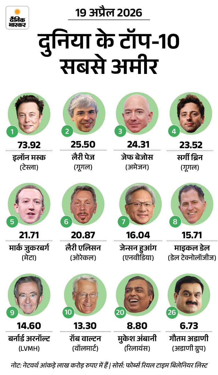 कल दुनिया के टॉप-10 सबसे अमीर कौन रहे यह भी देख लीजिए…