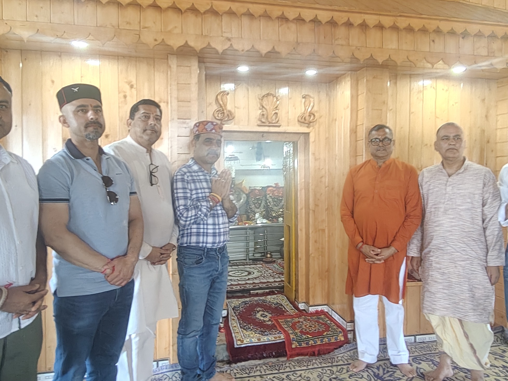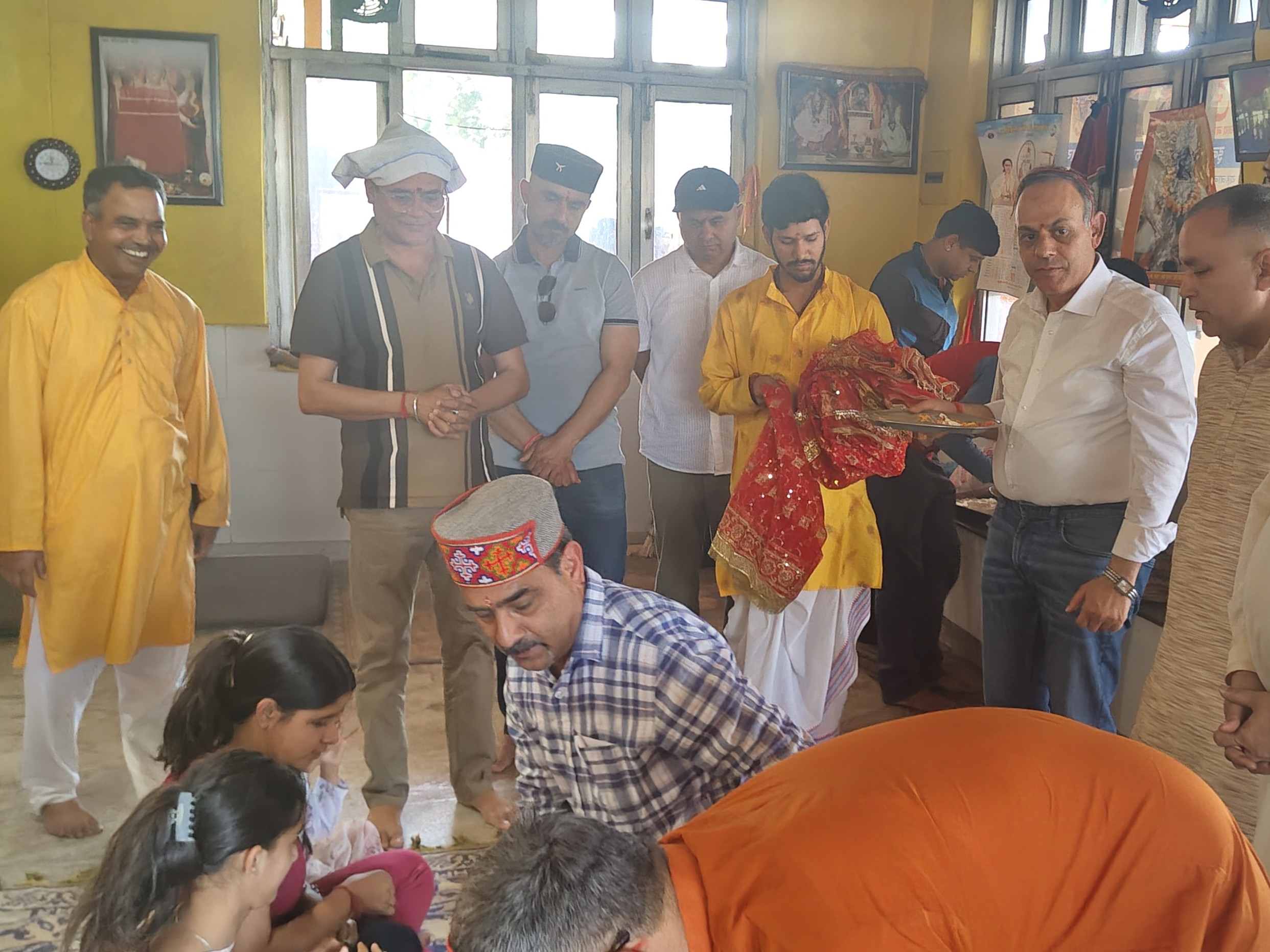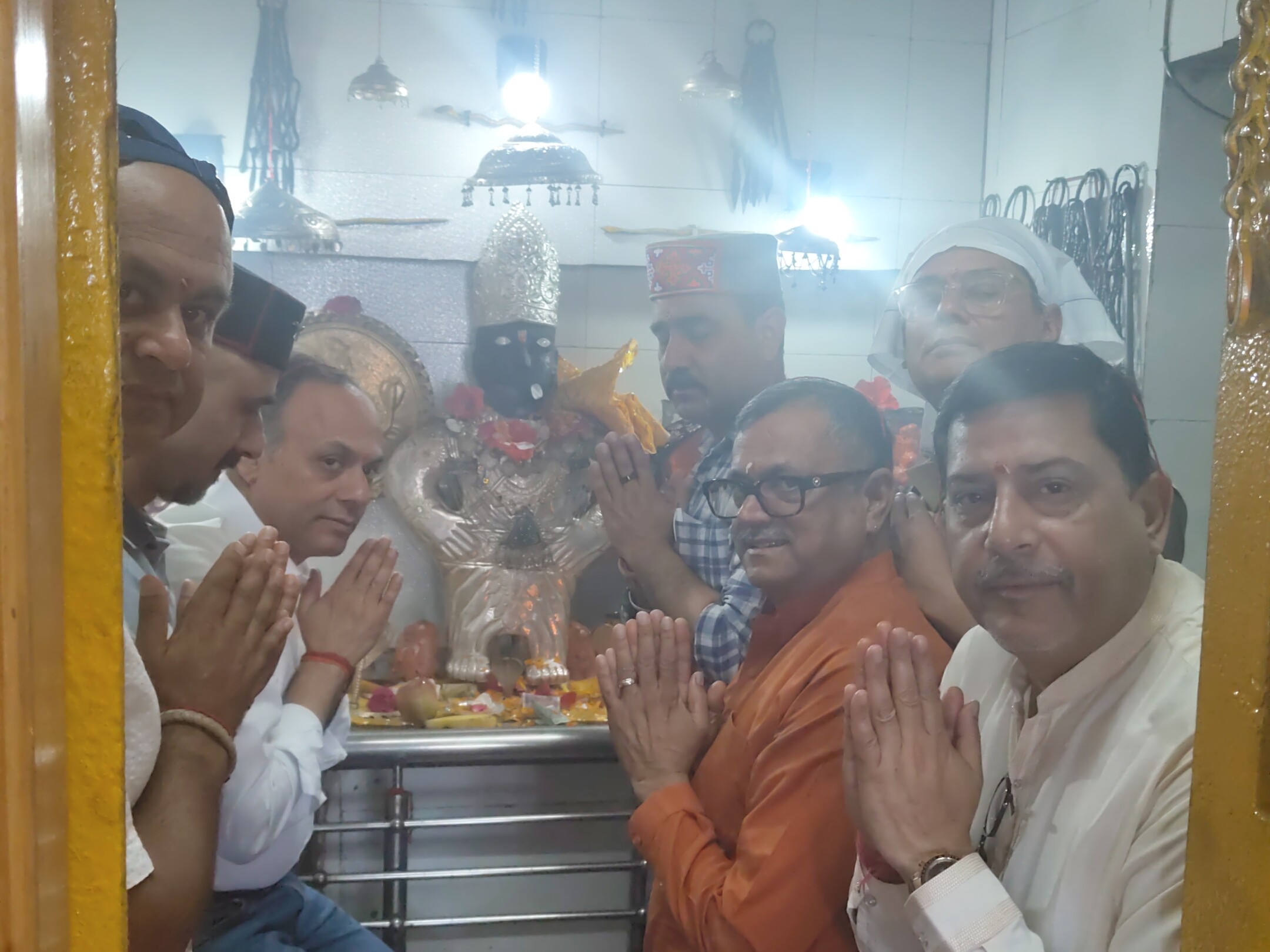 धर्मशाला के मंदिर में पूजा अर्चना करते एचपीसीए के पदाधिकारी।