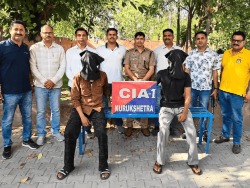 कुरुक्षेत्र जिले के लाडवा में हिमालयन ग्रुप ऑफ प्रोफेशनल इंस्टीट्यूशंस के चेयरमैन रजनीश बंसल के घर पर अंधाधुंध फायरिंग करने के मामले में पुलिस ने दो आरोपियों को गिरफ्तार किया है। आरोपी विशाल यादव उर्फ बीड़ी निवासी दप्पर व अरुणवीर सिंह उर्फ अन्नु निवासी टिवाना जिला मोहाली कुछ समय पहले ही गैंग से जुड़े थे। फायरिंग में नोनी राणा गैंग का नाम सामने आया था। 15-16 अप्रैल की रात बाइक पर आए गैंग के शूटर्स ने 18 राउंड से ज्यादा गोलियां चलाईं थी। फायरिंग से ठीक पहले बदमाशों ने घर के अंदर एक पर्ची फेंकी थी। इस पर्ची पर गैंग के शूटर्स शुभम पंडित और कार्तिक शर्मा के नाम लिखे थे। शुभम पंडित की गिरफ्तारी पर एक लाख रुपए का इनाम घोषित है। पर्ची पर लिखा था, जल्दी मिलते है घटना का सीसीटीवी फुटेज सामने आया था। रात करीब 12 बजे दो बदमाश अग्रवाल कॉलोनी की गली में पहुंचते हैं। एक बदमाश पैदल चल रहा था और दूसरा बाइक पर उसके पीछे आ रहा था। पैदल चल रहे बदमाश ने पहले घर के अंदर एक पर्ची फेंकी। पर्ची पर अंग्रेजी में Shubham Pandit, Kartik Sharma; Rudra Bansal Jaldi milte hai’ लिख था। जनवरी में रंगदारी मांगी कर्मी ओम प्रकाश के मुताबिक, जनवरी 2025 में रजनीश बंसल को रंगदारी के लिए फोन पर धमकी मिली थी। रंगदारी नहीं मिलने से बदमाश उनसे रंजिश रखे हुए थे। उस रंजिश और पैसे की मांग के चलते ही बदमाशों ने डराने नीयत से उनके घर पर फायरिंग कर हमला किया है। हालांकि कुछ समय पहले रजनीश बंसल की सुरक्षा हटा दी गई थी। पड़ोसी के आंगन में गिरे खोल पर्ची फेंकते ही दोनों बदमाशों ने अपने हथियार निकाले और घर पर गोलियों की बौछार कर दी। फायरिंग इतनी जबरदस्त थी कि चेयरमैन के घर की खिड़कियों के शीशे चकनाचूर हो गए। उस समय घर की देखरेख करने वाला कर्मी ओम प्रकाश निवासी संभालखा अंदर सो रहा था। गोलियों की आवाज सुनकर वह बुरी तरह सहम गया। 13 अप्रैल की रात आए थे बंसल अपने घर रजनीश बंसल अपने परिवार के साथ कभी-कभी यहां आते हैं। हालांकि अभी वे अपने परिवार के साथ पंचकूला-चंडीगढ़ में रहते हैं। रजनीश बंसल 13 अप्रैल को फायरिंग से दो दिन पहले अपने लाडवा स्थित घर पर आए थे। इसकी अगले दिन बंसल वापस चले गए थे। वह 15 अप्रैल की रात कर्मी ओम प्रकाश ही घर पर अकेला था। एक दिए हथियार दूसरे बाइक- प्रतीक सीआईए-एक के इंचार्ज प्रतीक कुमार ने बताया कि आरोपी विशाल और दोनों एक दूसरे को पहले से जानते थे। विशाल ने बाइक आरोपी अन्नू को उपलब्ध करवाई थी। उसके बाद अन्नु ने बाइक और असला शूटर्स तक पहुंचाया था। दोनों को तीन दिन के रिमांड पर लेकर पूछताछ जारी है।