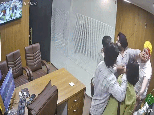 बहस, हाथापाई और बहस होती है घटना की CCTV में सामने आया है कि सिख नौजवान दफ्तर में आता है। यहां उसकी कर्मचारियों से बहस होती है और फिर हाथापाई करने लगता है। इसके बाद स्टाफ के कर्मी सिख युवक को घेर लेते हैं और पीटना शुरू कर देते हैं। इस बीच हरी शर्ट कमीज पहने नौजवान किसी चीज से सिख नौजवान पर हमला कर देता है। झगड़ा करते हुए लोग एक-दूसरे के साथ गाली गलौच भी करते हैं। इसमें सिख नौजवान हमलावर को मनिंदर नाम लेकर बुला रहा है। घटना में घायल सिख नौजवान के सिर से खून भी निकलता है। दफ्तर का दरवाजा बंद करके हाथापाई की सिर से खून निकलने पर सिख नौजवान के साथी ने उसे चलने के लिए कहते हैं। इस बीच कर्मियों द्वारा दफ्तर का दरवाजा बंद कर लिया जाता है। इसके बाद दोनों में फिर हाथापाई होती है। कर्मियों को सिख नौजवान कहता है कि वह उनके खिलाफ पर्चा दर्ज करवाएगा जिस पर हमलावर युवक कहते हैं कि जो करवाना है करवा लो। बताया जा रहा है कि हरी शर्ट पहले नौजवान के साथ सिख नौजवान का पहले भी विवाद हो चुका है। दोनों पक्षों ने पुलिस को दी शिकायत इस मामले को लेकर दोनों पक्षों की तरफ से बस स्टैंड पुलिस को शिकायत दे दी गई है। पुलिस का कहना है कि दोनों पक्षों के बयानों के आधार पर आगे की कार्रवाई की जा रही है। लेकिन सरेआम गुंडागर्दी को लेकर प्रशासन की कार्रगुजारी पर सवाल खड़े होने शुरू हो गए हैं।